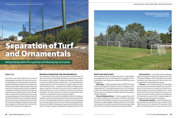 Good separation of turf and ornamentals in the sports turf landscape. All photos provided by John C. Fech