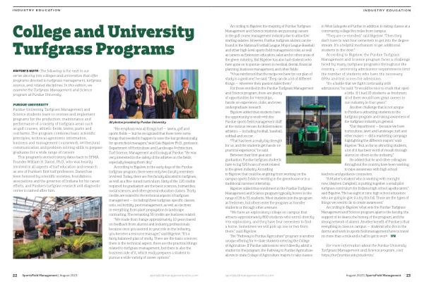 For more information about the Purdue University Turfgrass Management and Science program , visit https :// turf . purdue . edu / students /. sportsfieldmanagementonline . com August 2023 | SportsField Management