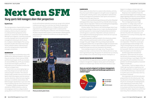 One respondent who felt their education prepared them for the industry said , “ I got my education at Iowa State University , and they do an amazing job at emphasizing the value of getting your hands dirty . There were times I would learn about something in my classes and then that same day go to work for the athletic department and do that exact thing . That combination of learning sportsfieldmanagementonline . com August 2024 | SportsField Management