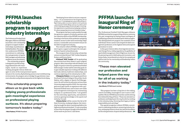 This initiative reflects PFFMA’s ongoing mission to grow, support and inspire the next generation of sports turf professionals.