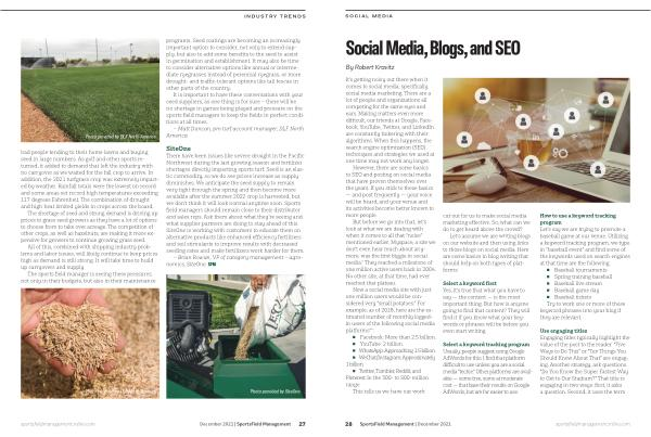 Photo provided by DLF North America Photo provided by SiteOne sportsfieldmanagementonline . com December 2021 | SportsField Management