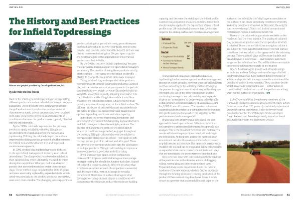 In 1990 , vitrified clay topdressing was introduced to the sports field management industry as an infield amendment . The clay product was baked much hotter than calcined clay , which ultimately changed its water absorption capabilities . What you had was a harder particle that absorbed much less water than calcined clays . These vitrified clays only lasted for 10 to 15 years and were eventually replaced by expanded shale , which acted very similarly to the vitrified products , except they were even more durable . The changing landscape of these products during that period left many groundskeepers confused as to what to do with their fields . It took some time for end users to understand the benefit , as there was little to no research during that 30-year span to guide the field managers in the application of these various products on their infields .