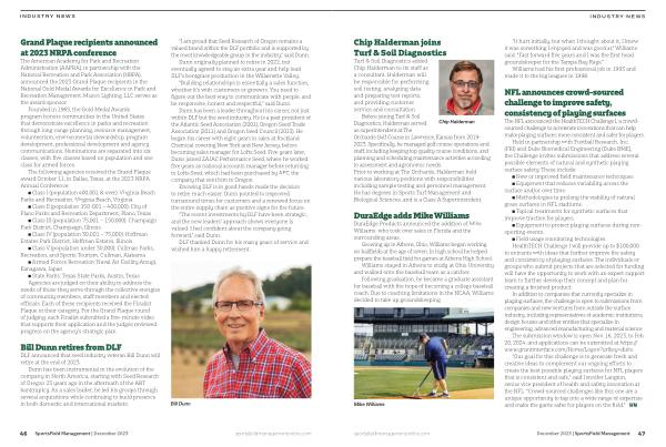 “ Our goal for this challenge is to generate fresh and creative ideas to complement our ongoing efforts to create the best possible playing surfaces for NFL players that is consistent and safe ,” said Jennifer Langton , senior vice president of health and safety innovation at the NFL . “ Crowd-sourced challenges like this one are a unique opportunity to tap into a wide range of expertise and make the game safer for players on the field .” sportsfieldmanagementonline . com December 2023 | SportsField Management