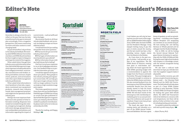This is also a good time to remind those of you who are Certified Sports Field Managers (CSFM) that writing an article that gets published in SportsField Management magazine earns you Industry Service Points needed to qualify for recertification. So please reach out to me to discuss article ideas for 2026.