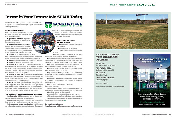 If you would like to submit a photograph for John Mascaro’s Photo Quiz, please send a high-resolution digital photo to John Mascaro via email at john@turf-tec.com. If your photograph is selected, you will receive full credit. All photos submitted will become property of SportsField Management magazine and the Sports Field Management Association.