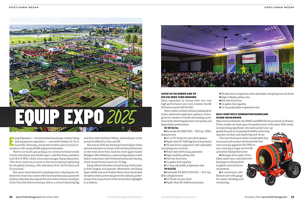 Equip Exposition — the international landscape, outdoor living and equipment exposition — was held October 21-24 in Louisville, Kentucky, and posted another year of record attendance with nearly 30,000 registered attendees.