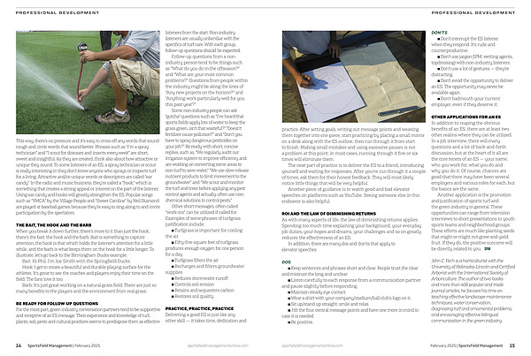 John C . Fech is a horticulturist with the University of Nebraska-Lincoln and Certified Arborist with the International Society of Arboriculture . The author of two books and more than 400 popular and trade journal articles , he focuses his time on teaching effective landscape maintenance techniques , water conservation , diagnosing turf and ornamental problems , and encouraging effective bilingual communication in the green industry . sportsfieldmanagementonline . com February 2025 | SportsField Management