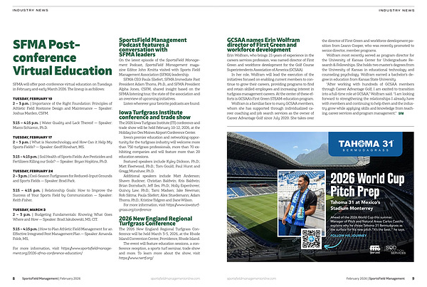 For more information, visit https://www.sportsfieldmanagement.org/2026-sfma-conference-education/