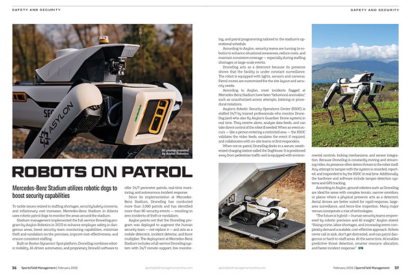 Asylon points out that the DroneDog program was deployed to augment the human security team — not replace it — and acts as a mobile deterrent, incident detector, and force multiplier. The deployment at Mercedes-Benz Stadium includes a full-service DroneDog system with 24/7 remote support, live monitoring, and patrol programming tailored to the stadium’s operational schedule.