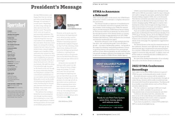 The rebrand includes an expansion of membership services , a new direction , and a focus on growth . Don ’ t miss the revelation of this exciting era for STMA ! The rebrand will be unveiled during the STMA General Session during its 33rd annual conference in Savannah , Ga . At the end of the educational portion of the General Session on January 18 , which concludes at approximately 9 a . m . EST , STMA President Nick McKenna , CSFM , will present the new brand and what the membership can expect .