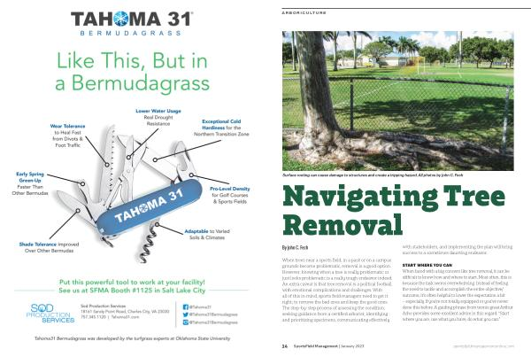 When trees near a sports field , in a park or on a campus grounds become problematic , removal is a good option . However , knowing when a tree is really problematic or just looks problematic is a really tough endeavor indeed . An extra caveat is that tree removal is a political football , with emotional complications and challenges . With all of this in mind , sports field managers need to get it right ; to remove the bad ones and keep the good ones . The step-by-step process of assessing the condition , seeking guidance from a certified arborist , identifying and prioritizing specimens , communicating effectively with stakeholders , and implementing the plan will bring success to a sometimes daunting endeavor .