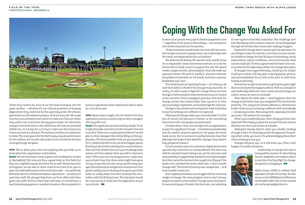 Alpha Jones, CSFM, is athletic field specialist at Duke University. He also serves on the SFMA Board of Directors as President-Elect. He can be reached at morthangrass @ gmail. com sportsfieldmanagementonline. com July 2025 | SportsField Management