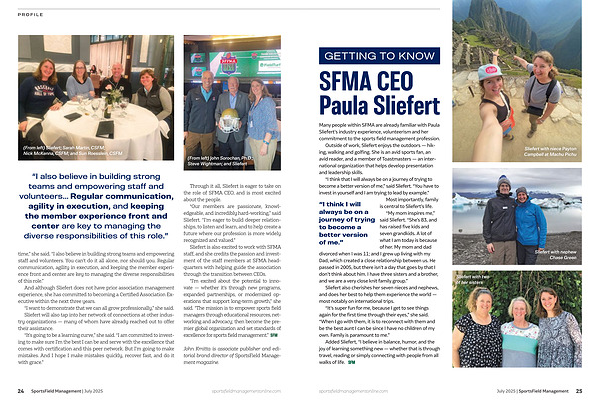 “ I’ m excited about the potential to innovate— whether it’ s through new programs, expanded partnerships, or modernized operations that support long-term growth,” she said.“ The mission is to empower sports field managers through educational resources, networking and advocacy; then become the premier global organization and set standards of excellence for sports field management.”