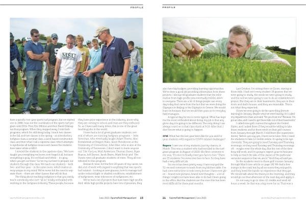 So the students went to those golf courses January through March ( see article on page 18 ). We had a few bumps in the road , but by all accounts they enjoyed it , and they loved the hands-on experience that they got . We would talk about the theory in the morning , and they would go out that afternoon or the next day and apply it . It ’ s not easy to go to class 12 credits and work 40 hours a week . So that was a big move for us . That was a