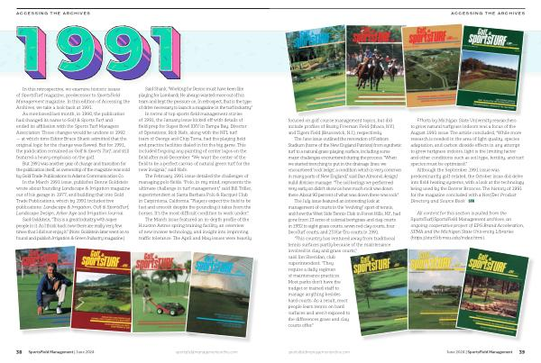 In this retrospective , we examine historic issues of SportsTurf magazine , predecessor to SportsField Management magazine . In this edition of Accessing the Archives , we take a look back at 1991 .