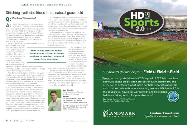 “ I ’ m proud and grateful to win FOTY again in 2022 . My crew here deserves all the credit . Their professionalism , hard work , and attention to detail are what make our field second to none . We also couldn ' t do it without our amazing vendors . HD Sports 2.0 is the best grass I have ever worked with and I ' m excited to keep working with it for years to come .”