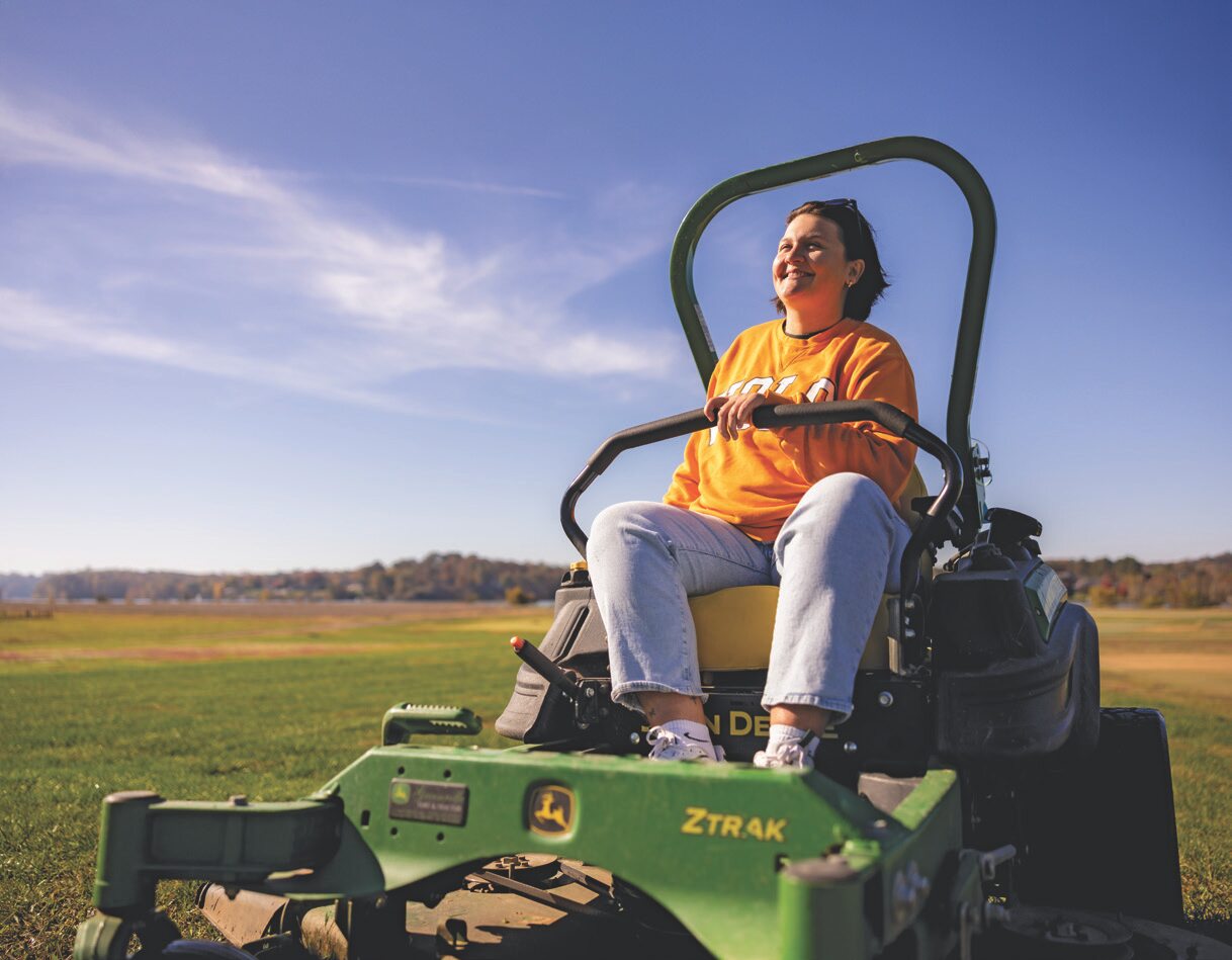 The sun has barely crept up over the horizon at the University of Tennessee (UT) AgResearch and Education Center, a 200-acre tract of land just south of the Knoxville campus where plant and soil science students are at work doing research that, quite literally, touches the world. The sound of a lawnmower firing in the distance breaks the silence. Before long, Rose Gibbons, a turfgrass science and management undergraduate who spent the summer interning at the center, rides out, ready to do her morning’s labor.