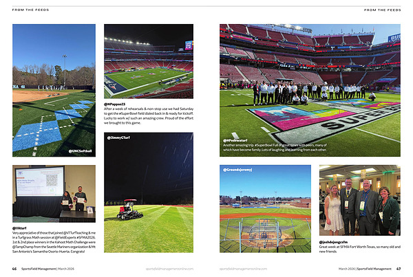 @ joshdejongcsfm Great week at SFMA Fort Worth Texas, so many old and new friends sportsfieldmanagementonline. com March 2026 | SportsField Management