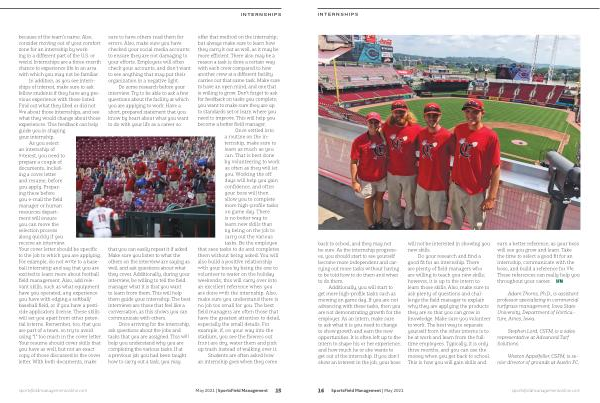 Students are often asked how an internship goes when they come sportsfieldmanagementonline . com May 2021 | SportsField Management