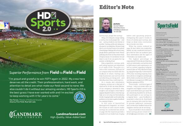 “ I ’ m proud and grateful to win FOTY again in 2022 . My crew here deserves all the credit . Their professionalism , hard work , and attention to detail are what make our field second to none . We also couldn ' t do it without our amazing vendors . HD Sports 2.0 is the best grass I have ever worked with and I ' m excited to keep working with it for years to come .”