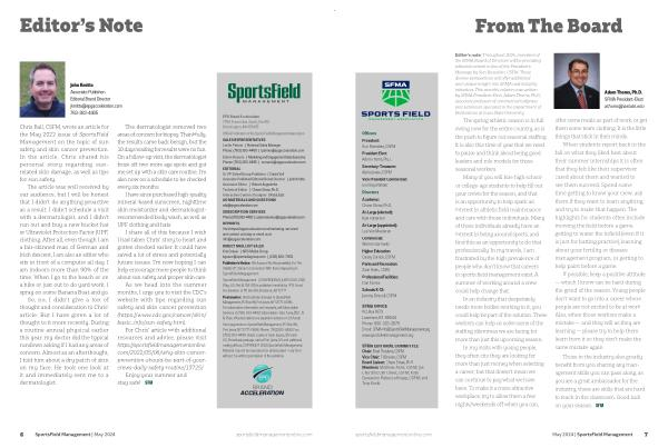 Adam Thoms , Ph . D . SFMA President-Elect athoms @ iastate . edu sportsfieldmanagementonline . com May 2024 | SportsField Management