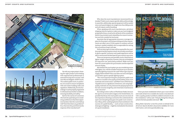 Mary Helen Sprecher wrote this article on behalf of the American Sports Builders Association( ASBA). For more information, visit www. sportsbuilders. org sportsfieldmanagementonline. com May 2025 | SportsField Management