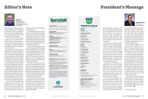 As spring sports wind down and the summer growing season ramps up, we are all hitting that busy time of year. Even so, I encourage you to take the time to participate in upcoming SFMA committee calls. These important discussions help move us ahead with new initiatives and content.