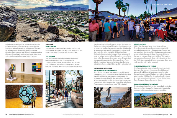 PALM SPRINGS DOWNTOWN PARK The brand new Palm Springs Downtown Park , nestled in front of the Palm Springs Art Museum , is a beautifully designed public space that promises a refreshing sportsfieldmanagementonline . com November 2024 | SportsField Management