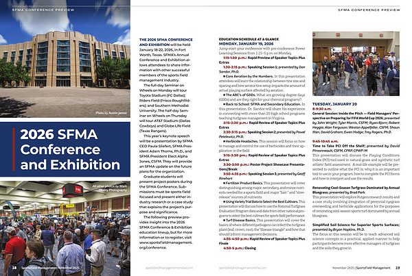 The following preview provides insight into the 2026 SFMA Conference & Exhibition education lineup, but for more information or to register, visit www.sportsfieldmanagement.org/conference.