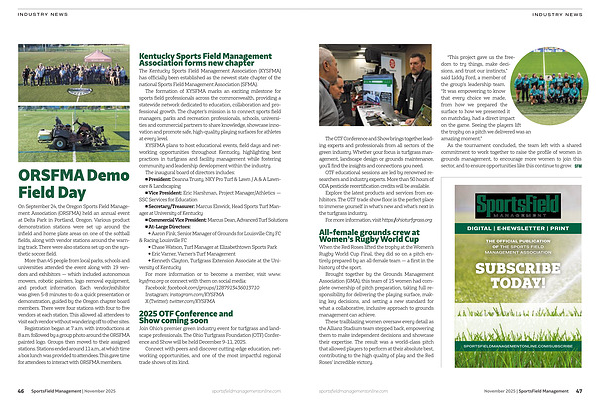The formation of KYSFMA marks an exciting milestone for sports field professionals across the commonwealth, providing a statewide network dedicated to education, collaboration and professional growth. The chapter’s mission is to connect sports field managers, parks and recreation professionals, schools, universities and commercial partners to share knowledge, showcase innovation and promote safe, high-quality playing surfaces for athletes at every level.
