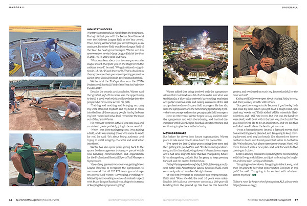 [ Editor’ s note: To help in the fight against ALS, please visit https:// www. als. org /] sportsfieldmanagementonline. com November 2025 | SportsField Management