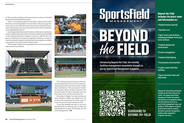 Introducing Beyond the Field, the monthly facilities management enewsletter brought to you by SportsField Management magazine.