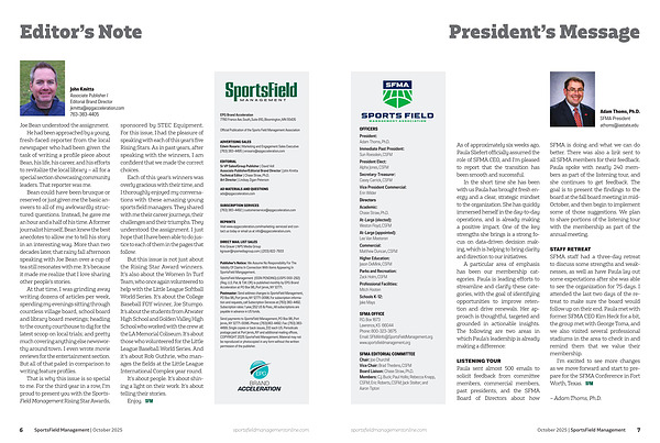 SFMA staff had a three-day retreat to discuss some strengths and weaknesses, as well as have Paula lay out some expectations after she was able to see the organization for 75 days. I attended the last two days of the retreat to make sure the board would follow up on their end. Paula met with former SFMA CEO Kim Heck for a bit, the group met with George Toma, and we also visited several professional stadiums in the area to check in and remind them that we value their membership.