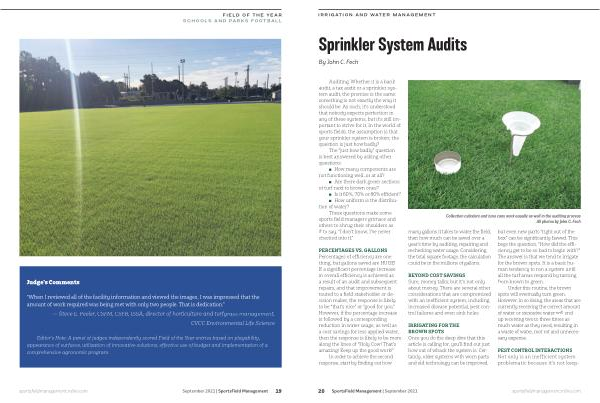 Auditing . Whether it is a bank audit , a tax audit or a sprinkler system audit , the premise is the same : something is not exactly the way it should be . As such , it ’ s understood that nobody expects perfection in any of these systems , but it ’ s still important to strive for it . In the world of sports fields , the assumption is that your sprinkler system is broken ; the question is just how badly ?