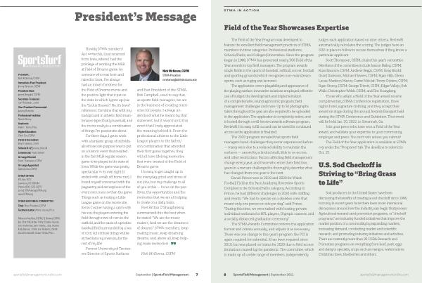 Nick McKenna , CSFM STMA President nmckenna @ athletics . tamu . edu sportsfieldmanagementonline . com September | SportsField Management