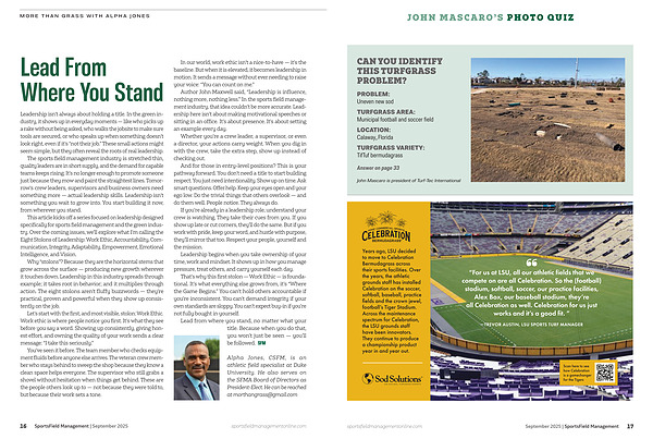 This article kicks off a series focused on leadership designed specifically for sports field management and the green industry . Over the coming issues, we’ll explore what I’m calling the Eight Stolons of Leadership: Work Ethic, Accountability, Communication , Integrity, Adaptability, Empowerment, Emotional Intelligence, and Vision.