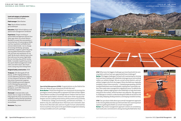 SFM: Can you share a little about your overall management approach to the winning field and what you feel have been the most important aspects to getting this field to an award-winning level? Barker: My overall management approach centers on consistency, hard work and a commitment to always leaving the field better than