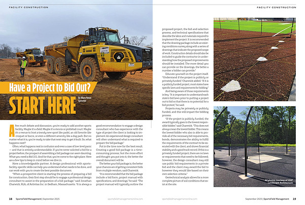 Have a knowledgeable partner. A design professional with sportsfacility-specific skills can help you understand what needs to be done, and can work with you to create the best possible document.