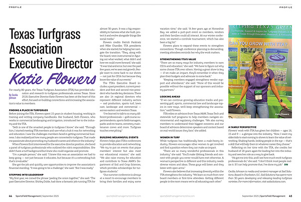 Cecilia Johnson is media and content manager at Sod Solutions. Based in Charleston, S. C., Sod Solutions has spent more than 30 years developing and releasing leading turfgrass varieties. For more information, visit sodsolutions. com. sportsfieldmanagementonline. com September 2025 | SportsField Management