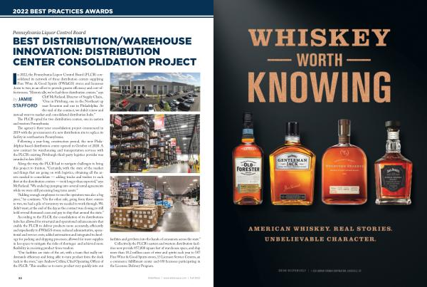 In 2022 , the Pennsylvania Liquor Control Board ( PLCB ) consolidated its network of three distribution centers supplying Fine Wine & Good Spirits ( FW & GS ) stores and licensees down to two , in an effort to provide greater efficiency and cost-effectiveness . “ Historically , we ’ ve had three distribution centers ,” says