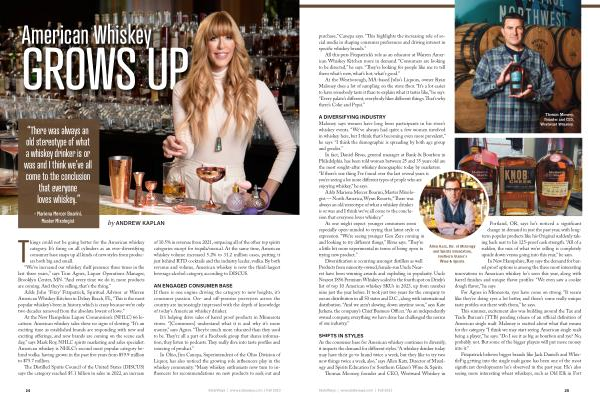 SHIFTS IN STYLES As the consumer base for American whiskey continues to diversify , it impacts the demand for different styles . “ A whiskey drinker today may have their go-to brand twice a week , but they like to try two new things twice a week , also ,” says Allen Katz , Director of Mixology and Spirits Education for Southern Glazer ’ s Wine & Spirits .
