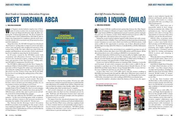 “ OHLQ’ s success with raffles, lotteries, and Single Barrel Saturday underscores the strength of Ohio’ s unique control model,” the spokesperson says.“ These initiatives prove that retail innovation, supplier collaboration, and consumer trust can thrive together. By pairing fairness with excitement, we not only sell bottles— we build lasting relationships between consumers, suppliers, and the Ohio market.” www. stateways. com Fall 2025 • StateWays 25