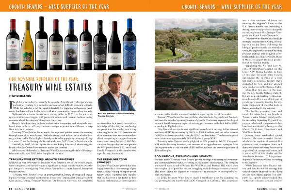 All these awards have led to Treasury Wine Estates earning the title of Beverage Information Group’ s 2025 Wine Supplier of the Year.