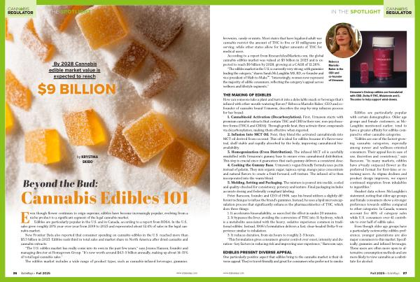 IN THE SPOTLIGHT brownies, candy or mints. Most states that have legalized adult-use cannabis restrict the amount of THC to five or 10 milligrams per serving, while other states allow for higher amounts of THC for medical users.