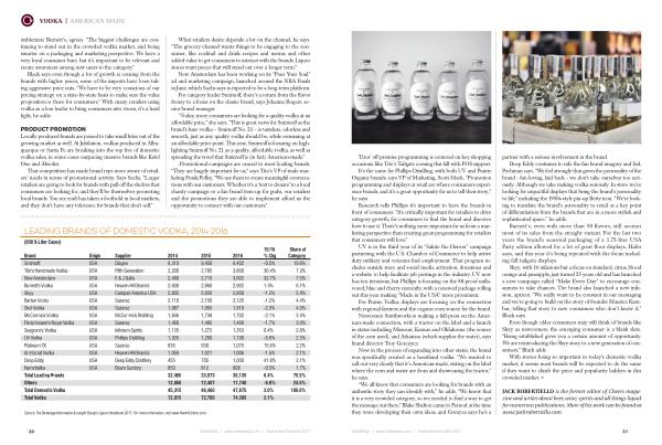 UV is in the third year of its “ Salute the Heroes ” campaign partnering with the U . S . Chamber of Commerce to help active duty military and veterans find employment . That program includes outside store and social media activation , donations and a website to help facilitate job postings in the industry . UV now has ten iterations , but Phillips is focusing on the 80-proof unflavored , blue and cherry currently , with a renewed package rolling out this year making “ Made in the USA ” more prominent .