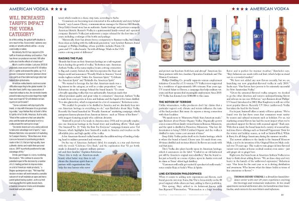 Right now , the brand team at American Anthem Vodka is too busy to think about adding flavors . “ We are knee-deep and very heavy in the launch of the unflavored expression ,” Robertson says . “ Our focus for the next year or so is driving distribution and awareness . Who knows what the future holds in terms of line extensions or flavors .” •