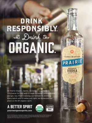 ENJOY IN MODERATION © 2018 PRAIRIE ORGANIC VODKA , 40 % ALC ./ VOL . ( 80 PROOF ), PRAIRIE ORGANIC GIN , 40 % ALC ./ VOL . ( 80 PROOF ), PRAIRIE CUCUMBER-FLAVORED ORGANIC VODKA , 35 % ALC ./ VOL . ( 70 PROOF ). DISTILLED IN BENSON , MN . BOTTLED BY ED PHILLIPS & SONS , PRINCETON , MN USA . MADE IN THE USA . NIELSEN TOTAL US 52 WEEK DOLLAR SALES : 12-30-17