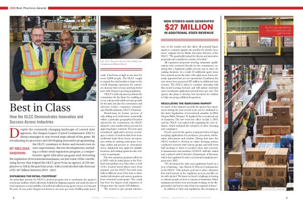 BY MELISSA SHERWIN own expectations . Recent developments , including a robust retail expansion program , a comprehensive agent education program and overseeing the regulation of recreational marijuana , are just some of the contributing factors that helped the OLCC grow from an agency of 230 employees to 328 in the past four years , with a total alcohol sales forecast of $ 1.447 billion between 2019 - 2021 .