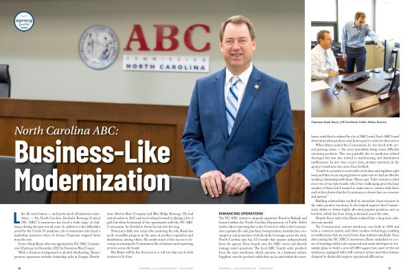 Like all control states — and pretty much all industries everywhere — the North Carolina Alcoholic Beverage Control ( NC ABC ) Commission has faced a wide range of challenges during the past several years . In addition to the difficulties posed by the Covid-19 pandemic , the Commission also faced a leadership transition when its former Chairman stepped down from the role .