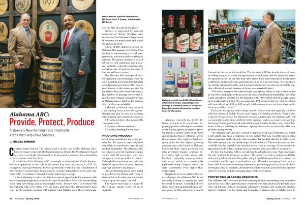 The Alabama ABC oversees alcohol licensing , tobacco permitting , and education across the state . The agency licenses everyone who sells alcohol and permits those who sell tobacco , tobacco products , alternative nicotine and electronic nicotine delivery systems . The Licensing and Compliance Division also regulates these li- www . stateways . com Spring 2024 • StateWays 11